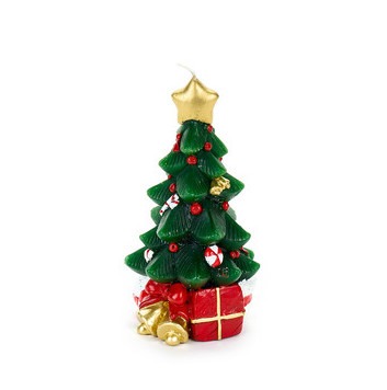 Candela a forma di alberello con pacchetti regalo. Ideale per la tavola, o sopra una mensola addobbata