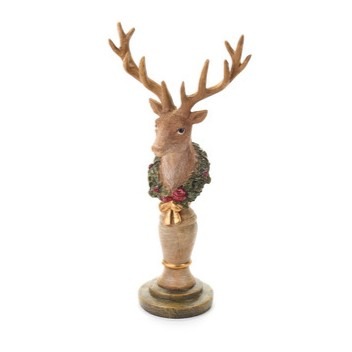 Questo elegante cervo in resina, impreziosito da una ghirlanda natalizia e delicati tocchi dorati, fa parte della romantica collezione Le Giostre di Amelie.