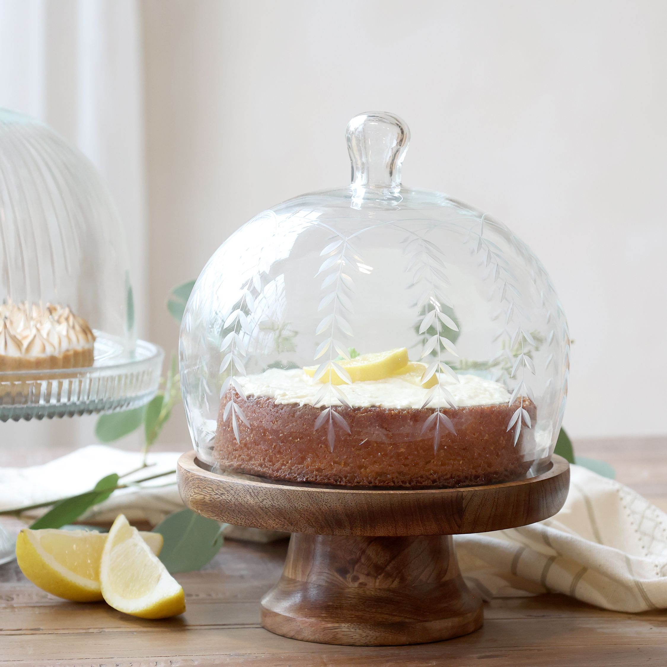Elegante alzata con campana firmata Chic Antique, perfetta per servire e valorizzare dolci, torte e piccole creazioni con uno stile raffinato e naturale.