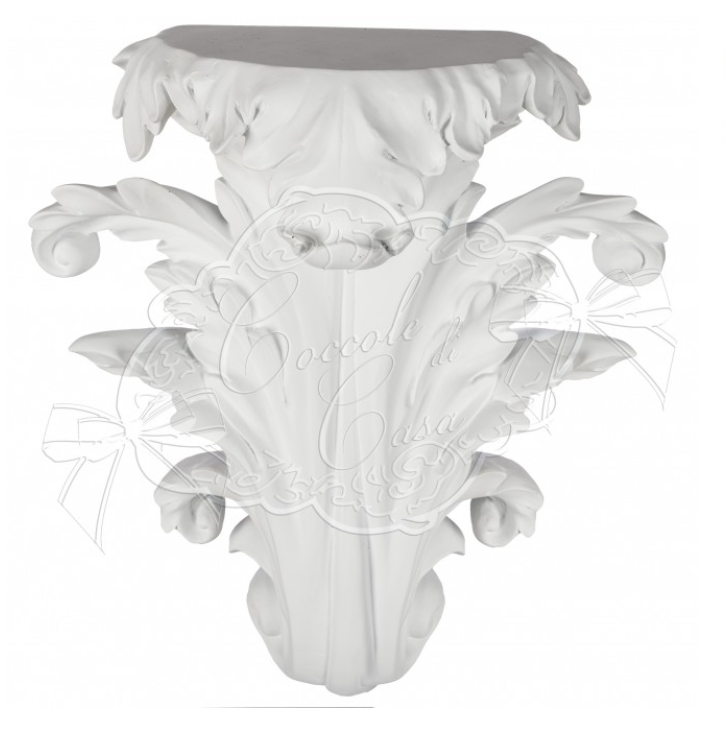 Realizzata in resina con finitura bianco opaco, questa mensola si distingue per il suo design ricco di decorazioni a foglie in rilievo, che richiamano lo stile classico e shabby chic. Le linee sinuose e i dettagli ornamentali la rendono un vero elemento decorativo capace di valorizzare qualsiasi ambiente.