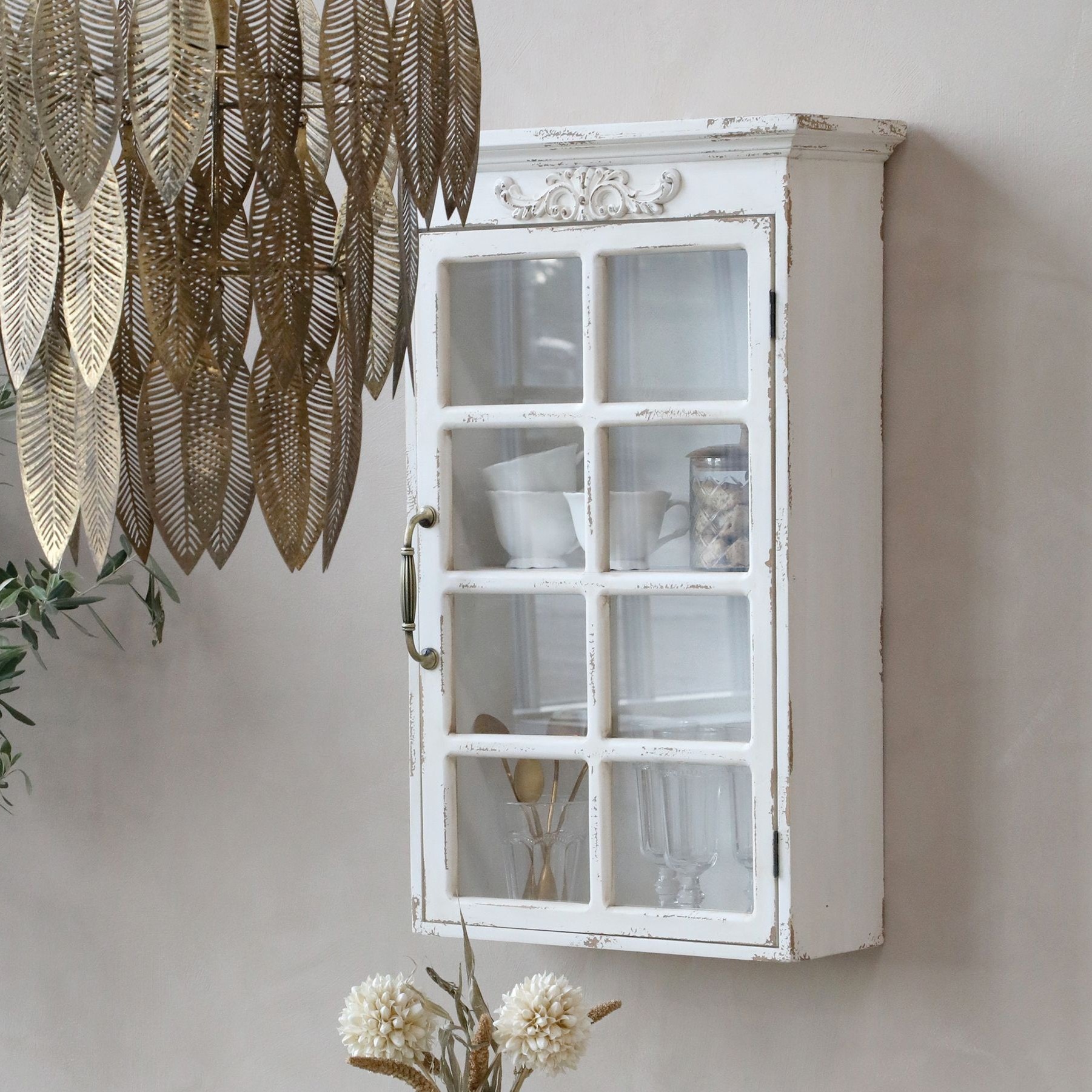 Mobile pensile Chic Antique con anta a vetro e finitura decapata. Perfetto per arredare la casa in autentico stile shabby chic