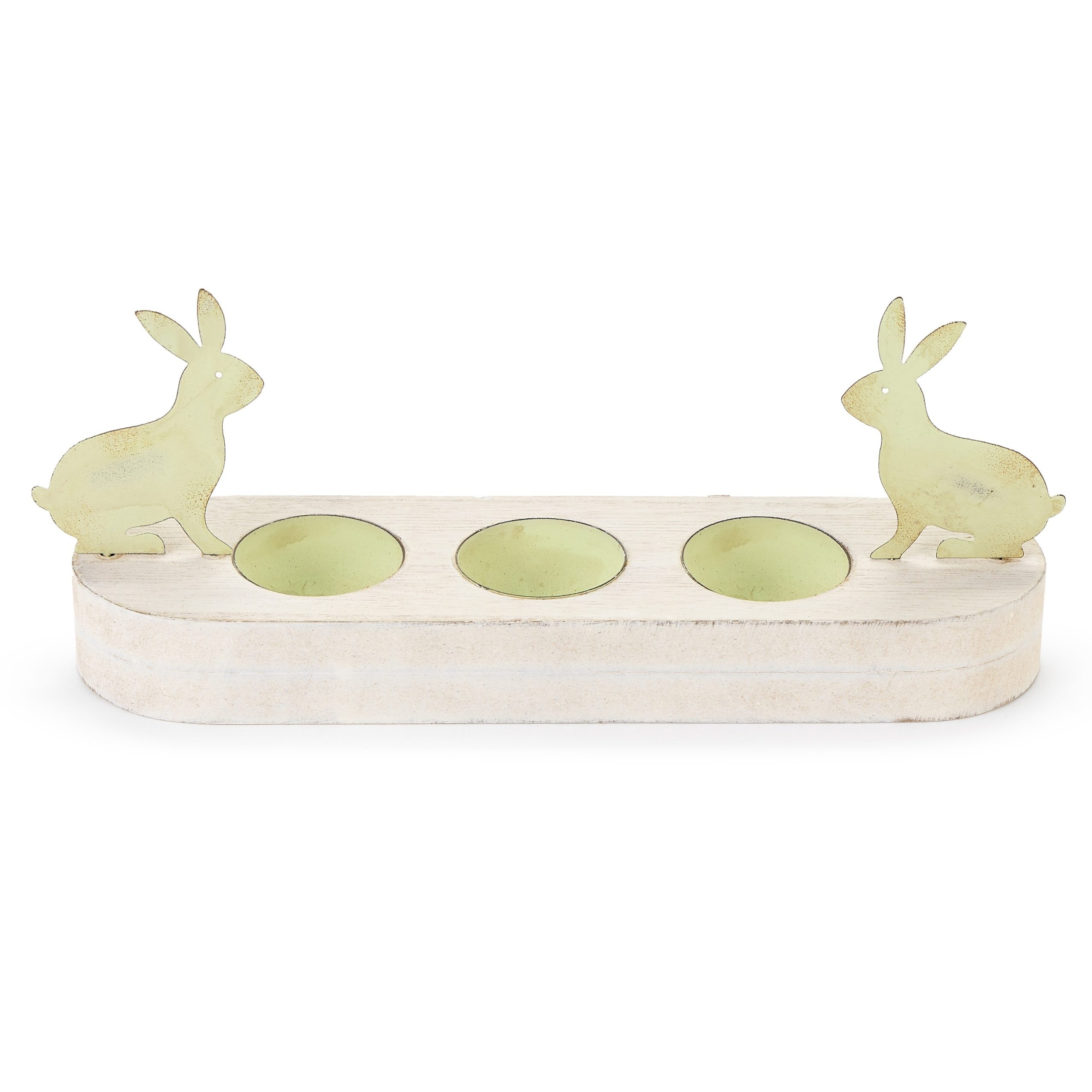 La base presenta tre alloggiamenti per le uova, rendendolo ideale per la tavola della colazione, per un brunch primaverile o come elemento decorativo in cucina.