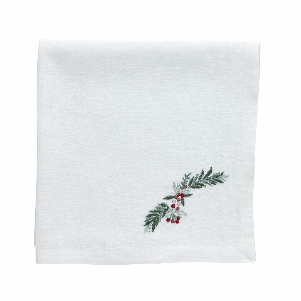 Realizzato in morbido lino naturale, questo tovagliolo presenta raffinati dettagli ricamati che raffigurano delicate foglie di agrifoglio e motivi natalizi di nostra esclusiva creazione. Il suo design senza tempo e i colori tenui lo rendono l’aggiunta perfetta a qualsiasi tavola, completando il tuo arredamento natalizio. Il tessuto di lino di alta qualità offre resistenza, mentre l’intricato ricamo conferisce un tocco raffinato alle tue celebrazioni natalizie.